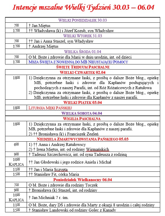 INTENCJE MSZALNE