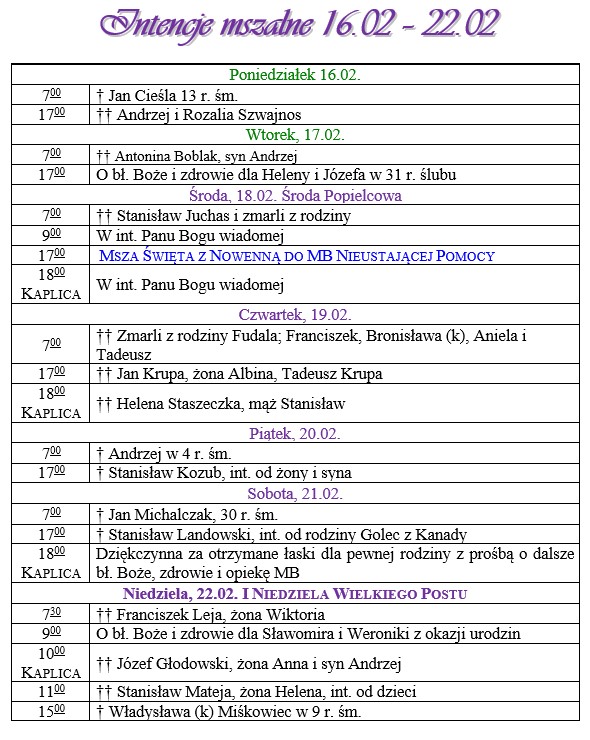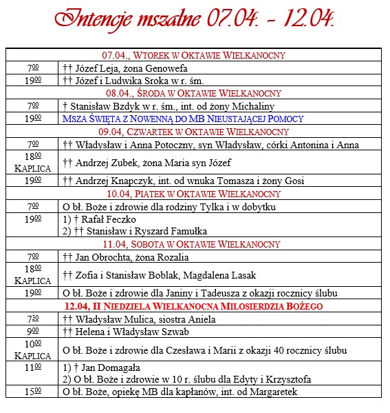 INTENCJE MSZALNE